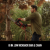 • LOW KICKBACK: This electric chainsaw features a 16-inch low kickback bar and chain
