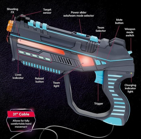 With advanced features like seamless synchronization between guns and vests, dual target zones for precision targeting, and child-safe infrared emission, Laser Tag Light Force guarantees a safe and immersive experience for players of all ages. Explore additional functionalities such as weapon mode selection, stealth mode, and the option for team or solo play, all with an impressive 150-foot reach.